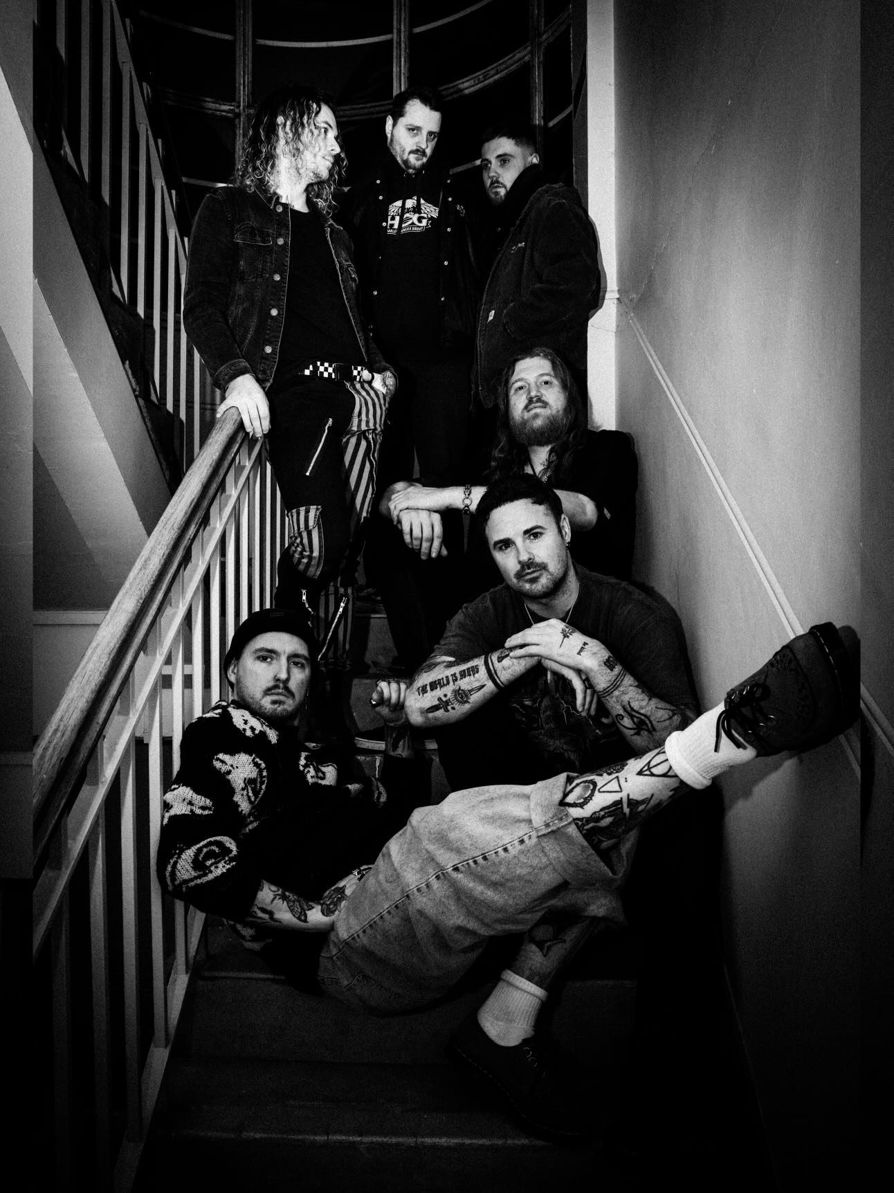 Across their music, Decrepit Youths channel a raw and uncompromising energy. The six-piece fuse heavy, riff-driven foundations with synth-soaked textures, distortion-drenched soundscapes, and lyrics that cut deep into themes of self-sabotage and oppression. The result is a dark, explosive take on alt-rock that feels both visceral and unrestrained.